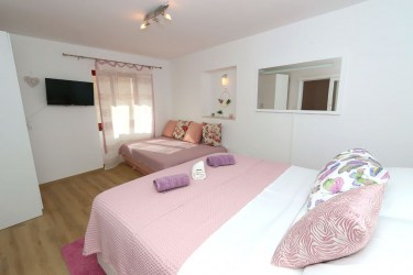 Apartman se sastoji od dvokrevetne spavaće sobe sa dodatnim sklopivim ležajem za dvije osobe, dnevni boravak sa kuhinjom i sklopivim ležajem za dvije osobe, kupaonica, klima uređaj, wifi i tv/sat.